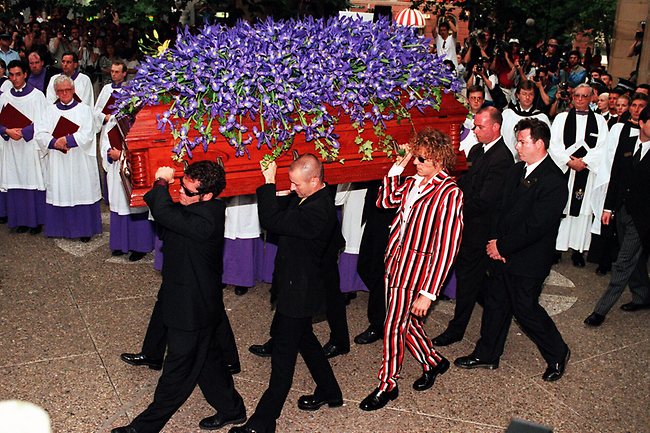 When Hutchence’s casket was removed from the hearse and carried into St. Andrew’s Anglican Cathedral in Sydney on a hot November afternoon, a single tiger lily representing his daughter sat amid 500 irises on top of the coffin.