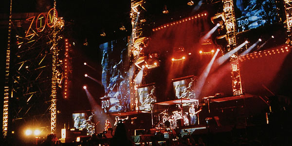 It was the first big concert production of any kind that used video not just as a medium for the people in the nosebleeds to see what was happening on stage, but to also provide a canvas on which images and slogans enhanced the songs and gave them broader meaning.